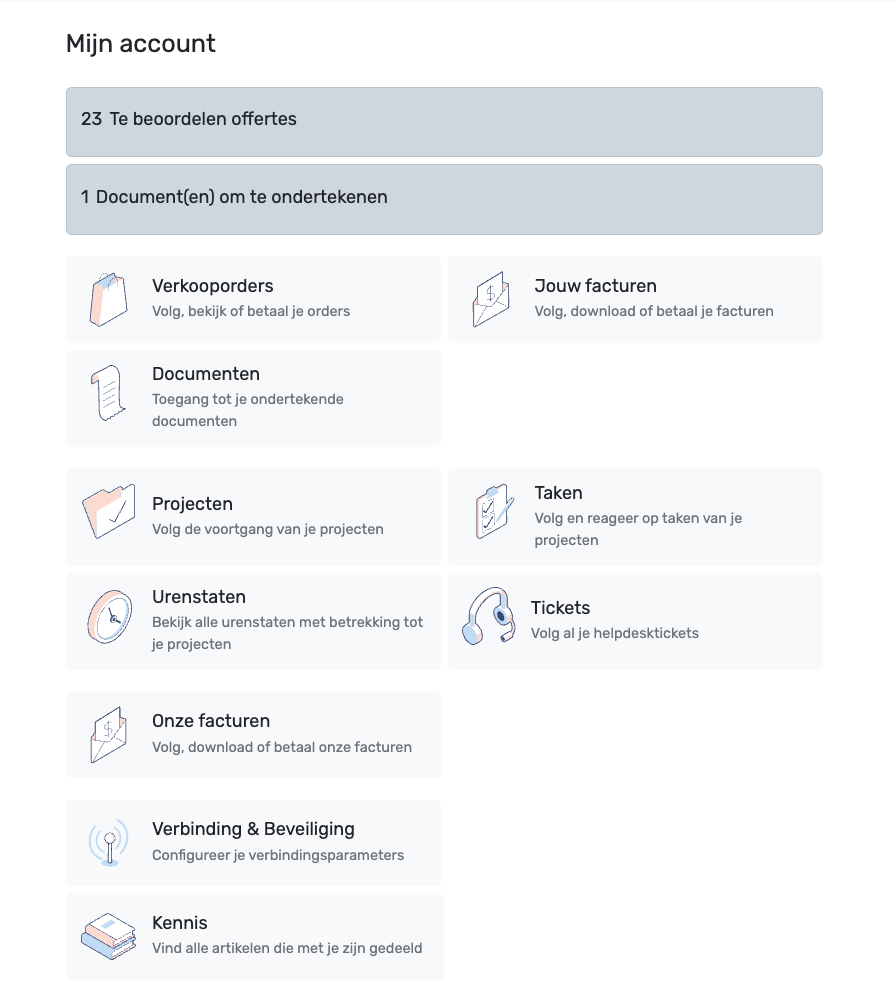 Met een Odoo-klantenportaal hebben klanten eenvoudig toegang tot hun gegevens, zoals offertes, facturen, bestellingen & communicaties.