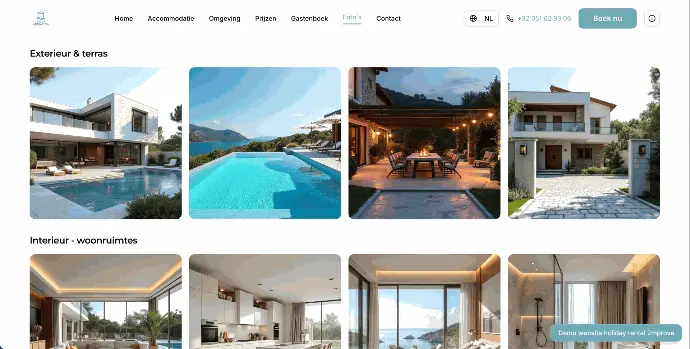 Aantrekkelijke fotogalerijen die je vakantiewoning visueel weergeven. Met een gebruiksvriendelijke indeling kunnen bezoekers eenvoudig door de foto's bladeren.
